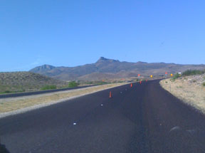 After Odessa the speed limit jumped to 80mph. When's the last time you saw that? Needless to say we got passed a lot. When the big rigs go whizzing by, it gets a little windy. The terrain finally turned pretty much to desert, with almost always a frontage road and railroad alongside.