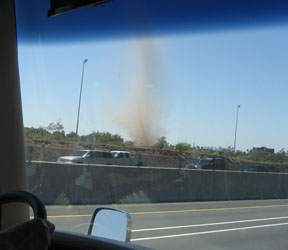 Every so often there would be warning signs about dust devils. (Arizona is famous for them.) Signs even warned about zero visiblity and not stopping on the road. Wonder what one does in that case, since the shoulders weren't all that large.