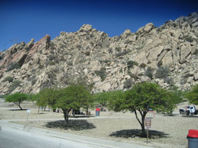 The trip through Phoenix was rough on Ken. It was like driving through downtown Atlanta. I got to enjoy looking at the overpasses. All the way through New Mexico and Arizona the overpasses are colorful and carefully tended. Pea gravel was pink and looked very neat.