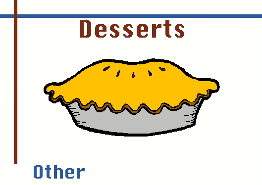 Apple Slices: When you want to serve ice cream for dessert and youre looking for a nice topping, try this. It can be made way ahead, and warmed just before serving. Cream Pie: This recipe was created by my grandmother in the days when they churned their own butter and cream. I dont think todays cream is nearly as good, but the recipe still stands up. Its a very rich dessert, but one your friends will remember. Fruit Pizza: Most interesting dessert. It looks fantastic, and people love it. Be sure to show it to everyone before you serve it. Pots de Creme: Elegant and delicious. I serve it in demitasse cups (a small portion is plenty), with tiny spoons. Walnut Bread: Well, its not really a dessert (its a sweet bread), but since I didnt want a section for breads, I had to put it somewhere! Great sliced cold with butter for breakfast. I make small ones for holiday gifts. |