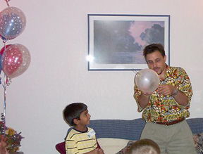 The theme of the party was "Magic." A magician visited, and Ken handled a pinata.