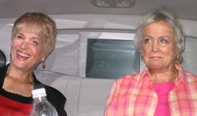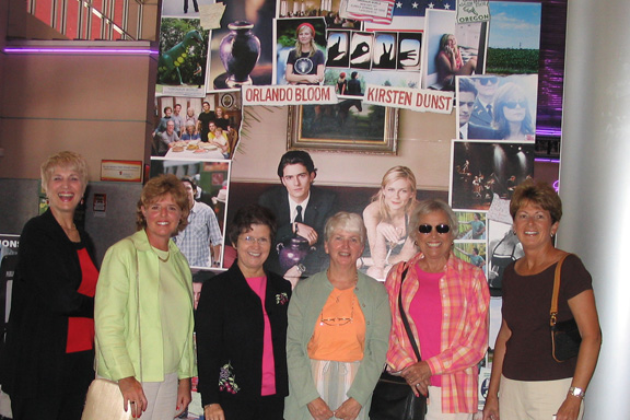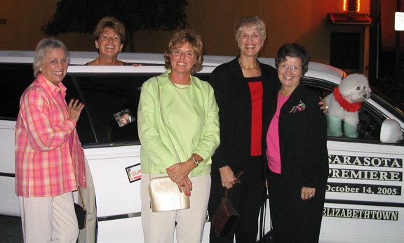 At the theater standing near the "Elizabethtown" poster, the ladies attending the Sarasota opening. First serious, then not.