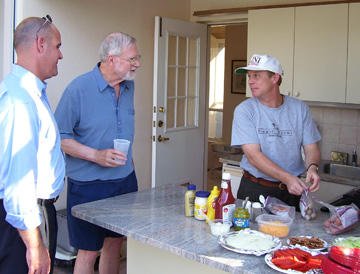 Marc cooked hamburgers and hot dogs for everyone.