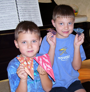 Cousin Ruth brought toys such as the paper airplane above, with Erica.