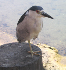 The heron below reflected in the water as it watched for any edible fish than swam by.