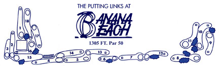 We played the 18-hole putting course (1305 ft., par 50). As you can see from the scorecard on the left, Andy was the big winner, with 58 strokes. I was low person, and got a whole lot of "gimmies" that I didn't deserve. (They were kind to me.)