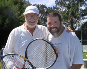 We played round-robin tennis, rotating every two games, for a couple of hours. Hard courts are VERY different from the clay that we're used to, in Florida. (I'm pretty sure Ken took the most number of games; I know it wasn't me.)