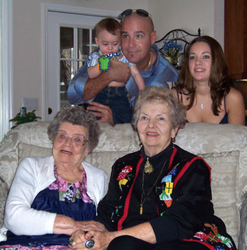 The five generations: Jordan Olivera, Grandpa Peter Mitchell, Mother Jessica, Great-great-grandmother Edythe Johnston, and Grandmother Barbara Mitchell