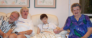 Middle left: with daughter Sue, her three children, and Edythe's great grandchildren Ashley and Amanda Beisler, Katherine Beisler, Kaitland and Erika Waldsmith.