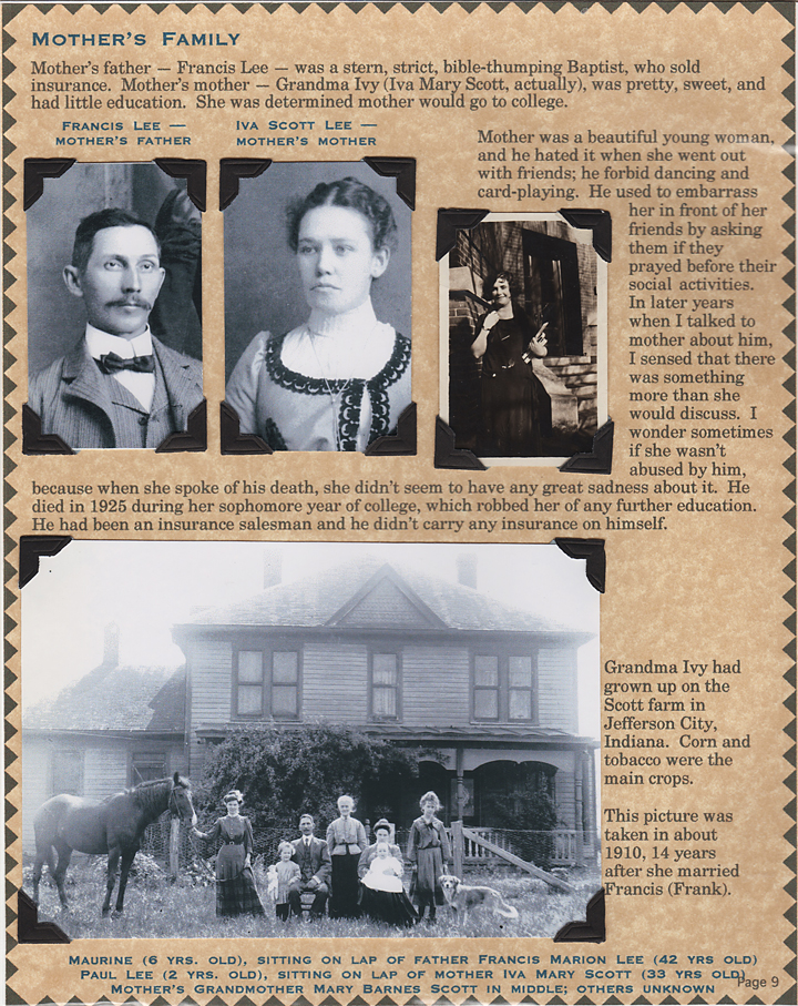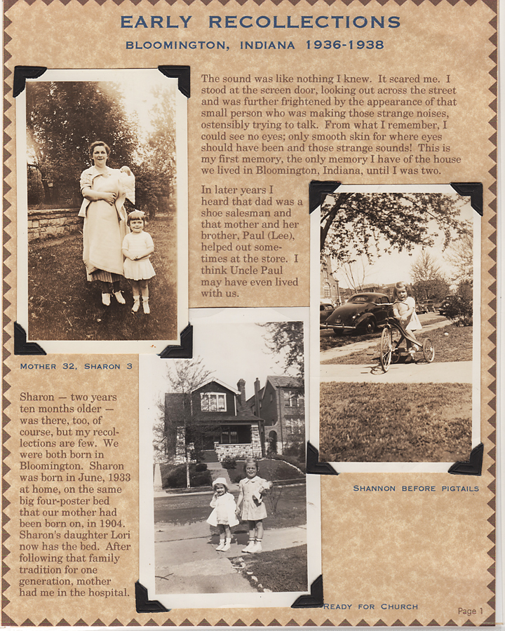 Some years ago I put together my life story up through high school. I was "into" scrapbooking at the time and, of course, there were no digital photos to choose from. So, these pages are scanned from a book I put together. Hope that you can read them. Shan