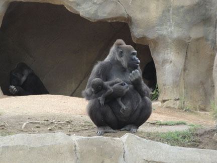 Giraffe's really do have a sweet face. Here is the latest baby gorilla born at the park in June, 2011. He seems to be peeking over her mother to find her dad. The mom Kokomo went to a lot of trouble to show off her baby to the crowd.