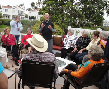 Ken explains to a rapt crowd about Dennis Wilson and his goal of climbing Mt. Kilimanjaro to benefit Parkinson's disease.