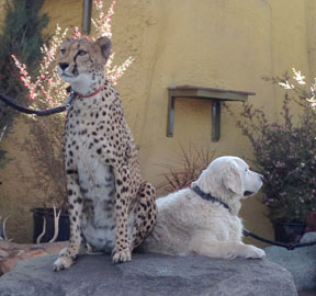 Cheetah's are shy animals, so each of them are paired (for life), with a companion dog (his was a beautiful golden retriever)å. They are together constantly.