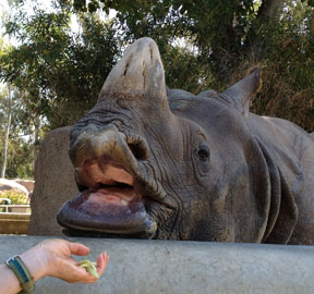 Feeding a rhino: now that's an interesting experience. Turns out their noses are prehensile and are used for gathering food. In order for it to eat from your hand, you must rather "swipe" it under the protrusion, all the while the rhino is dropping slime on your hand. Yes, they had places to wash your hands afterwards. I declined the activity, but did get to pet it (feels like metal armor).