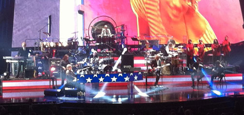 The stage continued to change as the lights changed, as did the piano. You can see the patriotic scene above, with the piano displaying stars. (Of course he was playing/singing "Philadelphia Freedom," written for Bill Jean King and her ladies' tennis team by the same name.)