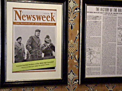 | It didn't say, but we assumed these were some of his medals. They were above the bar. | The hallway leading from the living room to the hotel hall had lots of pictures and stories. | |||||||||||