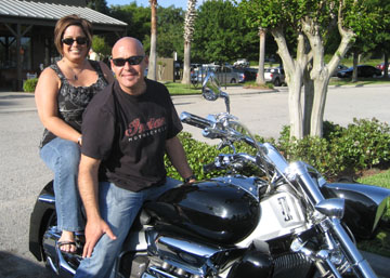 Our nephew Peter Mitchell and his wife Chris are going on a motorcycle rally called “Rolling Thunder,” to Washington in May, with 500,000 other bikers to honor the Vietnam Vets. As part of the “get ready,” they drove the cycle from their home and met us at the Cracker Barrell for dinner. It turned chilly and we felt sorry for Pete, who had no jacket and a long ride home.