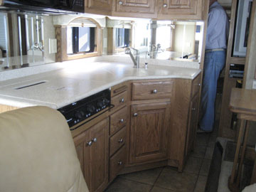Yesterday when we had the Moose washed, the fellow said two of our awnings that come out to cover the sliders were pulling away. So, we called a local fellow named Steve who came out to look. They evidently will need replacement, but since their job is just to prevent leaves and stuff from coming back into the house when we pull in the sides, they aren’t critical, so we’ll wait until we get somewhere that we’ll have a week to spare. He answered some other questions we had. For example, the hot water system that provides continuous hot water runs off our diesel fuel. Didn’t know that. Wonder what that does to the gas mileage, since it turns itself on every hour or so. It also explains why the basement has the faint odor of diesel.