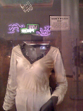 We got “all dressed up” and took a cab. This was the third casino we’d been in and it is such a surprise to see that a majority of the slots are penny slots (you couldn’t find those in Vegas, I think). It’s a typical Hard Rock in that it houses lots of rock memorabilia. The picture here is a dress worn by Nancy Wilson (son Andy’s boss Cameron Crowe is married to Nancy).