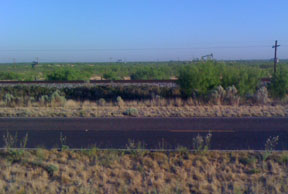 After Odessa the speed limit jumped to 80mph. When's the last time you saw that? Needless to say we got passed a lot. When the big rigs go whizzing by, it gets a little windy. The terrain finally turned pretty much to desert, with almost always a frontage road and railroad alongside.