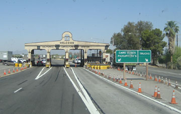 After the state line all traffic was pulled off to the side — not to look for illegal aliens, but to declare any fruits or vegetables. Since we were from Florida he asked if we had any citrus — it would not be allowed in the state. Ken assured him we did not and in fact preferred California oranges (fibber).
