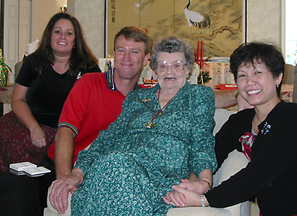 | Edythe Johnston, grandson Bruce Beisler and wife Nikki (right), and Pete Mitchell's wife Chris (we missed you, Pete!). | ||||||||||||||