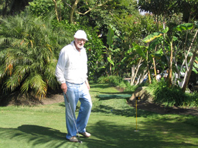 We played the 18-hole putting course (1305 ft., par 50). As you can see from the scorecard on the left, Andy was the big winner, with 58 strokes. I was low person, and got a whole lot of "gimmies" that I didn't deserve. (They were kind to me.)