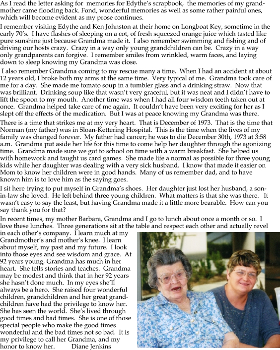 Edythe's grandaughter, Barbara's daughter