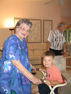 "Great grandma, how are you? This is why I love you. I love it when you took us to Demertrios, I love it when you took us to your yacht club, I love it when we take trips to your house. I love you for being you. Happy Birthday, Love Thomas."