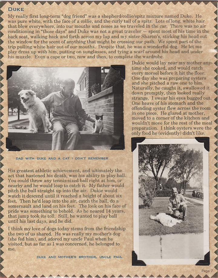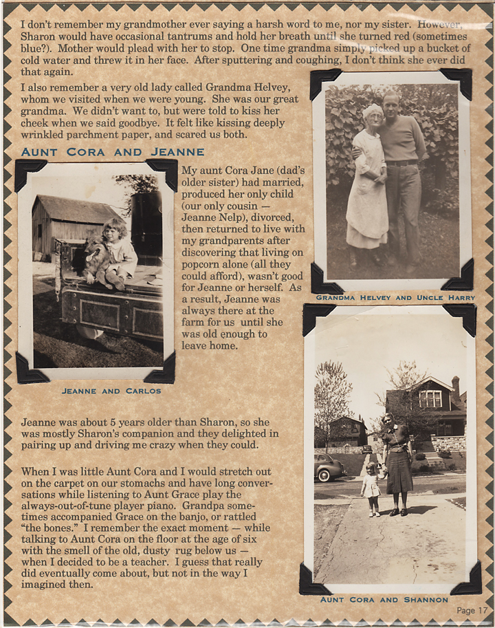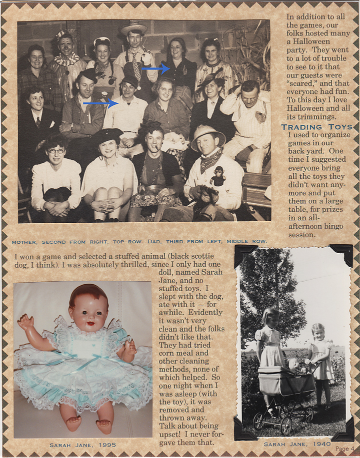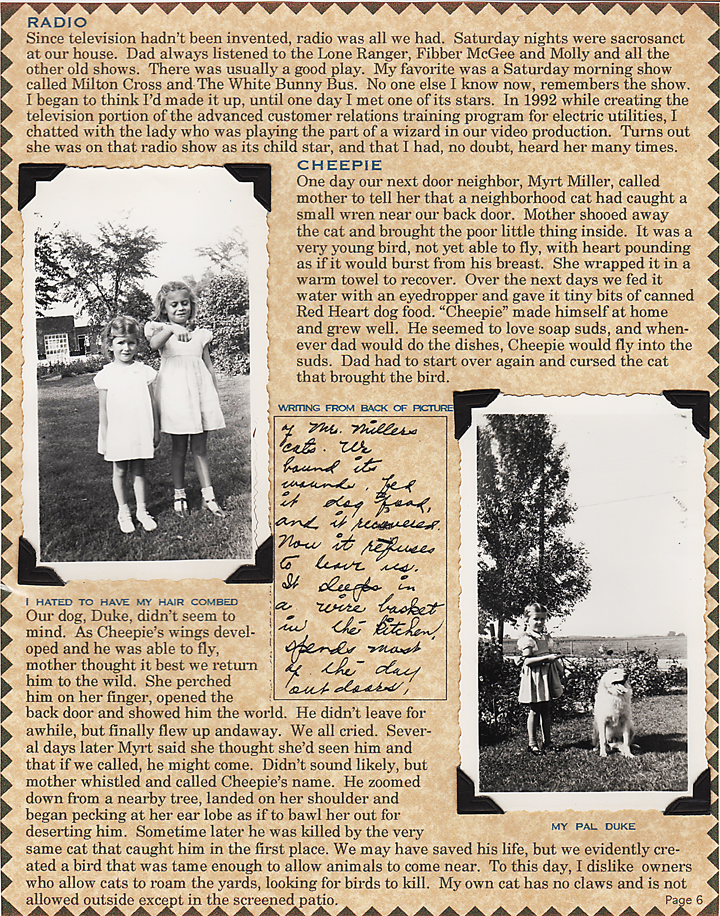 Some years ago I put together my life story up through high school. I was "into" scrapbooking at the time and, of course, there were no digital photos to choose from. So, these pages are scanned from a book I put together. Hope that you can read them. Shan