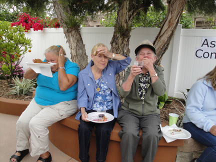 Priscilla and Bill Baker decided to go together, while Jean Heffler (hear no evil), Barbara Lowe (see no evil) and Sally Palmer (speak no evil) wait for the big moment.