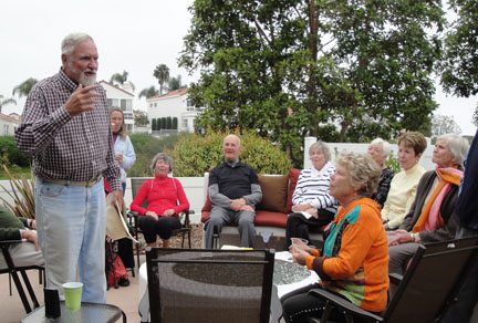 Ken explains to a rapt crowd about Dennis Wilson and his goal of climbing Mt. Kilimanjaro to benefit Parkinson's disease.