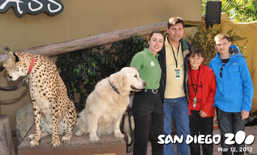 Cheetah's are shy animals, so each of them are paired (for life), with a companion dog (his was a beautiful golden retriever)å. They are together constantly.