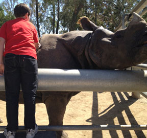 Feeding a rhino: now that's an interesting experience. Turns out their noses are prehensile and are used for gathering food. In order for it to eat from your hand, you must rather "swipe" it under the protrusion, all the while the rhino is dropping slime on your hand. Yes, they had places to wash your hands afterwards. I declined the activity, but did get to pet it (feels like metal armor).