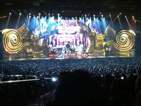 The stage continued to change as the lights changed, as did the piano. You can see the patriotic scene above, with the piano displaying stars. (Of course he was playing/singing "Philadelphia Freedom," written for Bill Jean King and her ladies' tennis team by the same name.)