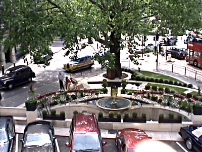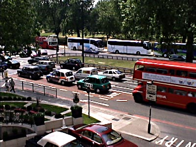 | Our balcony overlooked the valet parking and on out to Park Lane. | Park Lane traffic was fierce. Lots of double-decker busses and taxis. | |||||||||||