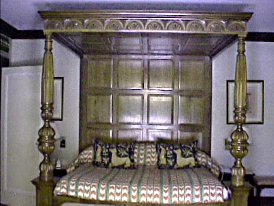 | The wooden, "queen" bed had four posters and a wooden ceiling. | The bedroom had a counch that faced a second TV | |||||||||||
