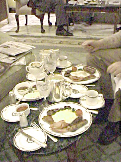 | Our first breakfast was in the Promenade. | A traditional English breakfast is always eggs, potatoes, sausage (called bangers), and a tomato. | |||||||||||
