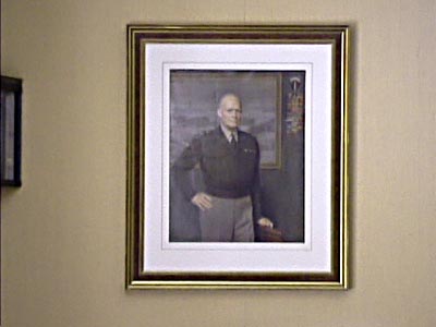 | The living room had a fake fireplace. | The picture of Eisenhower dominated the living room. | |||||||||||