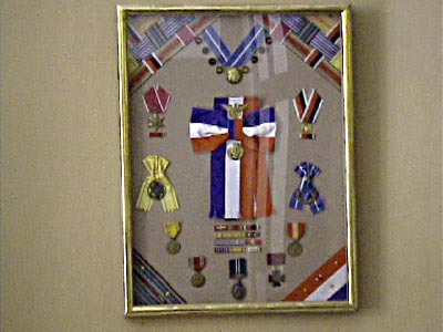 | It didn't say, but we assumed these were some of his medals. They were above the bar. | The hallway leading from the living room to the hotel hall had lots of pictures and stories. | |||||||||||